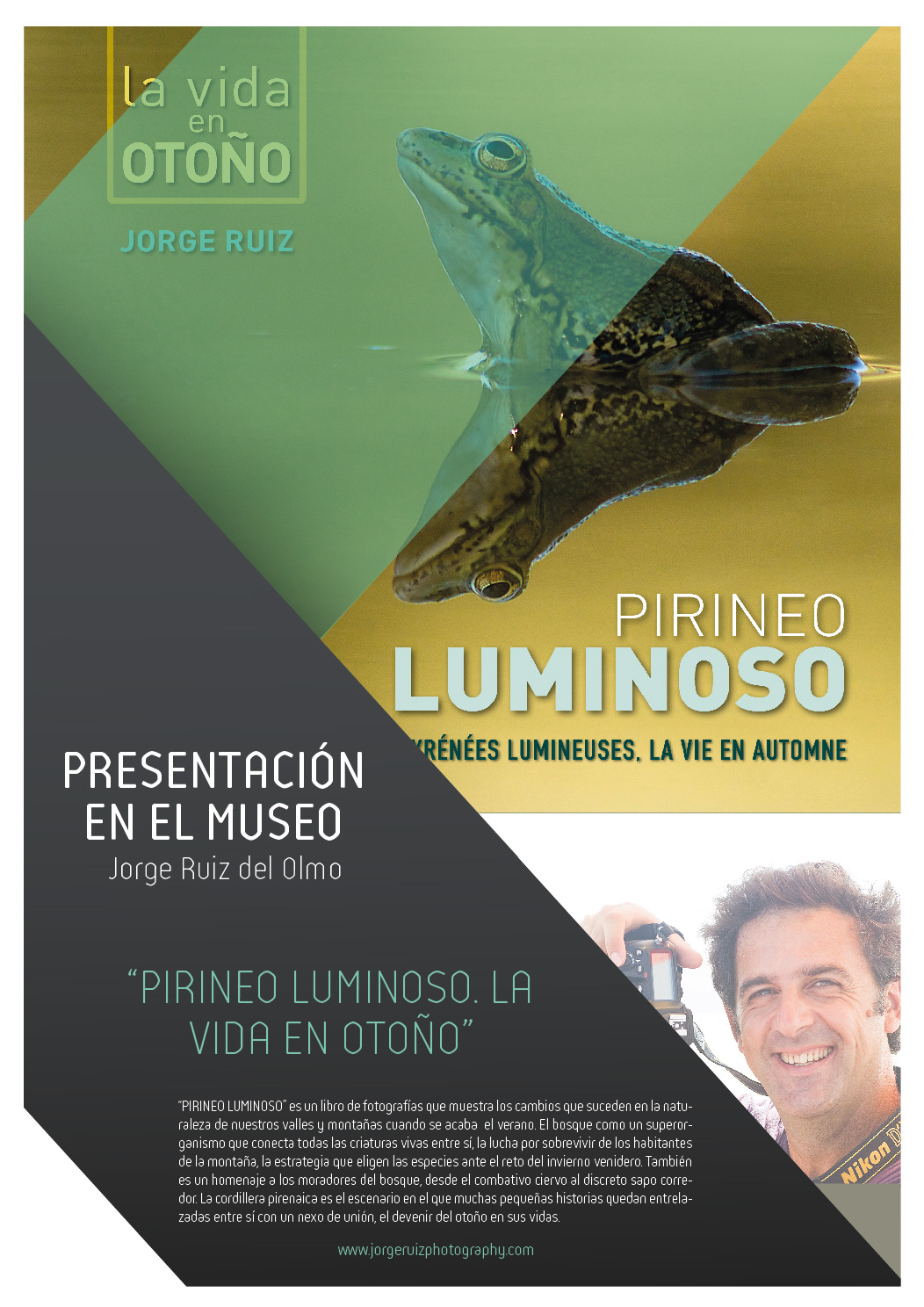 “PIRINEO LUMINOSO. LA VIDA EN OTOÑO” (SUA, 2019) es un compendio de fotografías. A través de ellas descubrimos los cambios que suceden en la naturaleza de nuestros valles y montañas cuando se acaba el verano. En él se muestra: el bosque como un superorganismo que conecta todas las criaturas vivas entre sí, la lucha por sobrevivir de los habitantes de la montaña, la estrategia que eligen las especies ante el reto del invierno venidero. También es un homenaje a los moradores del bosque, desde el combativo ciervo al discreto sapo corredor. La cordillera pirenaica es el escenario en el que muchas pequeñas historias quedan entrelazadas entre sí. El nexo de unión es el devenir del otoño en sus vidas.