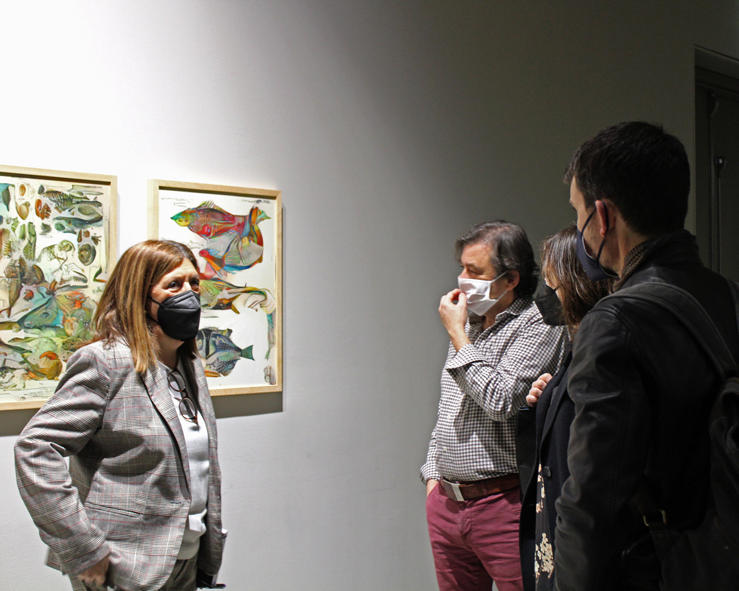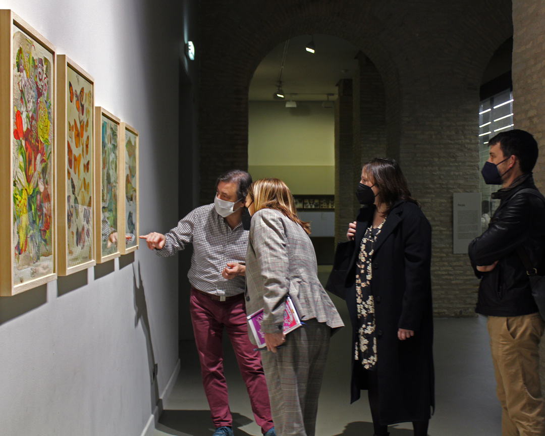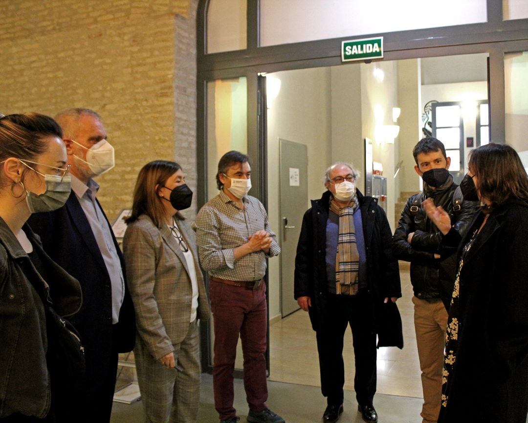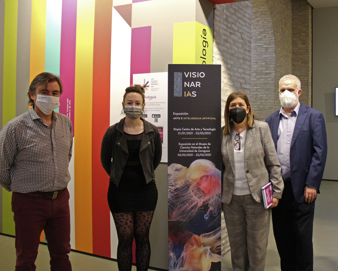 De izquierda a derecha: Julia Galán García (MCNUZ), Antonio Peiró Arroyo (Director de Relaciones Institucionales y Comunicación de la UZ), Yolanda Polo Redondo (Vicerrectora de Cultura y Proyección Social de la UZ), José Ignacio Canudo Sanagustín (Director del MCNUZ), Alberto Virto Medina (Director de eTOPIA Centro de Arte y Tecnología), Daniel Sarasa (Director Gerente de la Fundación Zaragoza Ciudad Conocimiento) y Blanca Pérez Ferrer (comisaria de la muestra).