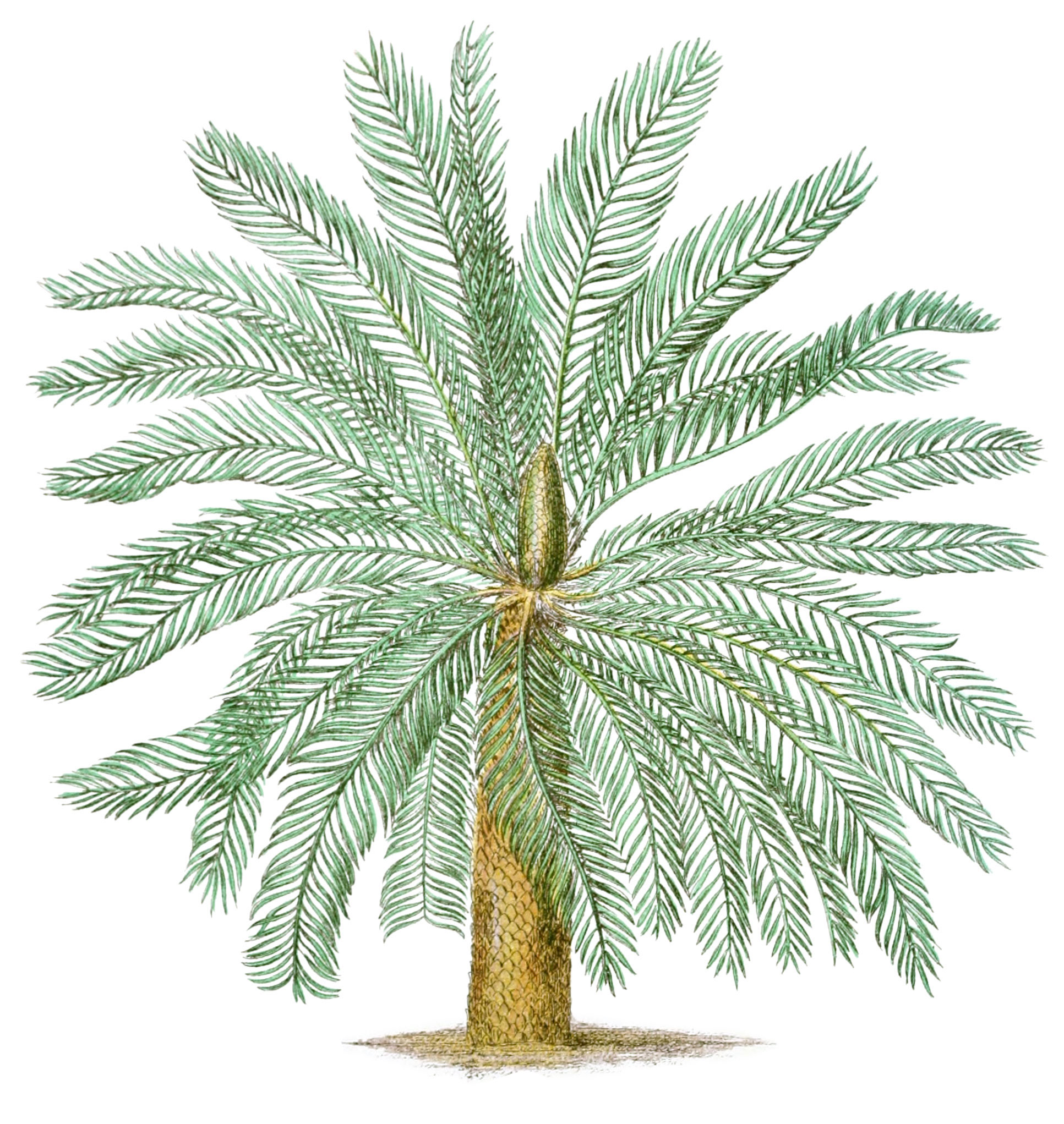 Ilustración de un cicadal realizada por Elizabeth Twining en 1868. Proyecto Illustrations of the Natural Order of Plants (en la página web más información)