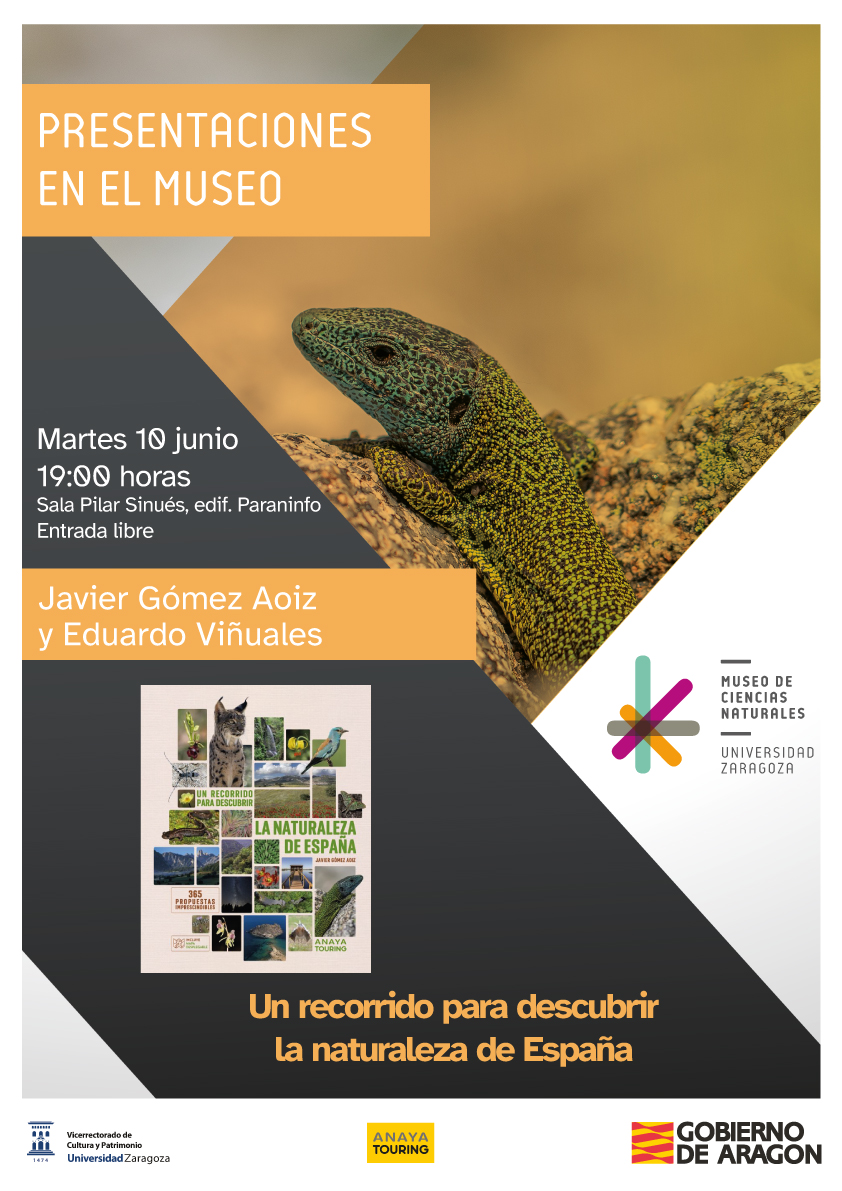 El próximo martes 10 de junio tendrá lugar en el MCNUZ la presentación del nuevo libro del biólogo y divulgador Javier Gómez Aoiz titulado “Un recorrido para descubrir la naturaleza de España”.