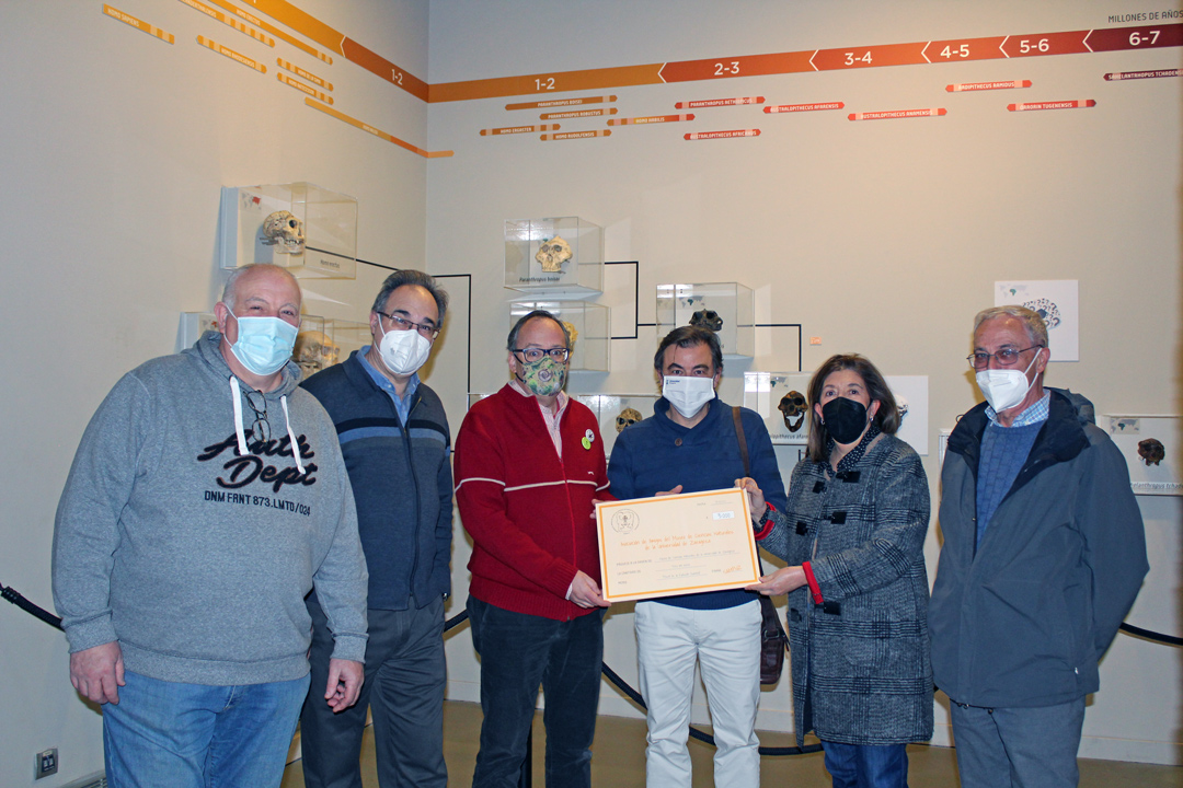 El pasado viernes, José Manuel Clúa, como presidente de la SAMPUZ y varios miembros de la Asociación, realizaron la entrega simbólica de un cheque de 3000 euros al director del Museo José Ignacio Canudo, y a la Vicerrectora de Cultura y Proyección Social, Yolanda Polo Redondo. El dinero se destinará a financiar la remodelación del mural sobre evolución humana del Museo. Esta entrega se enmarca en la conmemoración de los 25 años de la Asociación.