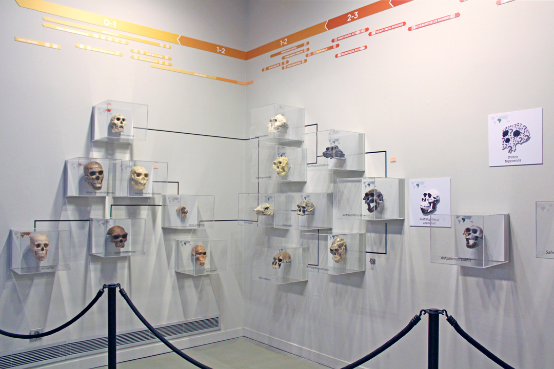 El dinero donado por la SAMPUZ ha servido para costear los trabajos de remodelación y puesta al día del mural de la evolución humana en el Museo. Se trata de una de las secciones que más fascinación despierta entre nuestros visitantes. En ella se integra, de manera armónica y visual, la historia de nuestro linaje. Aparecen las principales ramas del linaje humano que han habitado nuestro planeta desde los albores de nuestra evolución. Cada una va acompañada de una reproducción de un cráneo fósil tipo. De un solo vistazo, nuestros visitantes pueden admirar el cráneo de Lucy, una Australopithecus que vivió en África hace más de 3 millones de años. O el cráneo de Miguelón, uno de los homininos que habitó en la Sierra de Atapuerca de Burgos hace alrededor de 400 mil años. Y no son los únicos especímenes expuestos. Con la donación realizada por la SAMPUZ, se han añadido 8 nuevos cráneos a nuestro mural y se ha mejorado la gráfica.