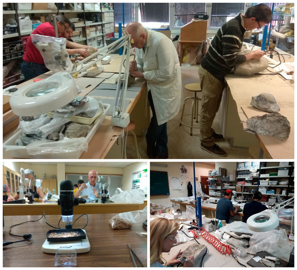 • Preparación mecánica de fósiles de vertebrados del Mesozoico y Cenozoico procedentes de prospecciones del equipo de voluntarios o de los investigadores de la Universidad de Zaragoza.